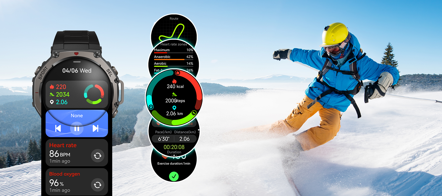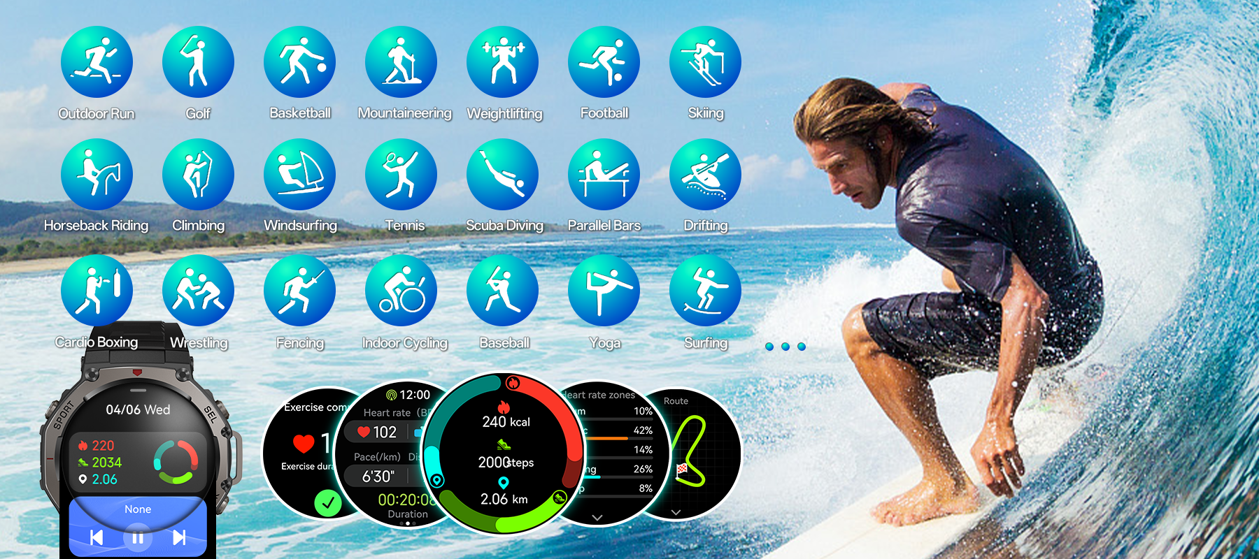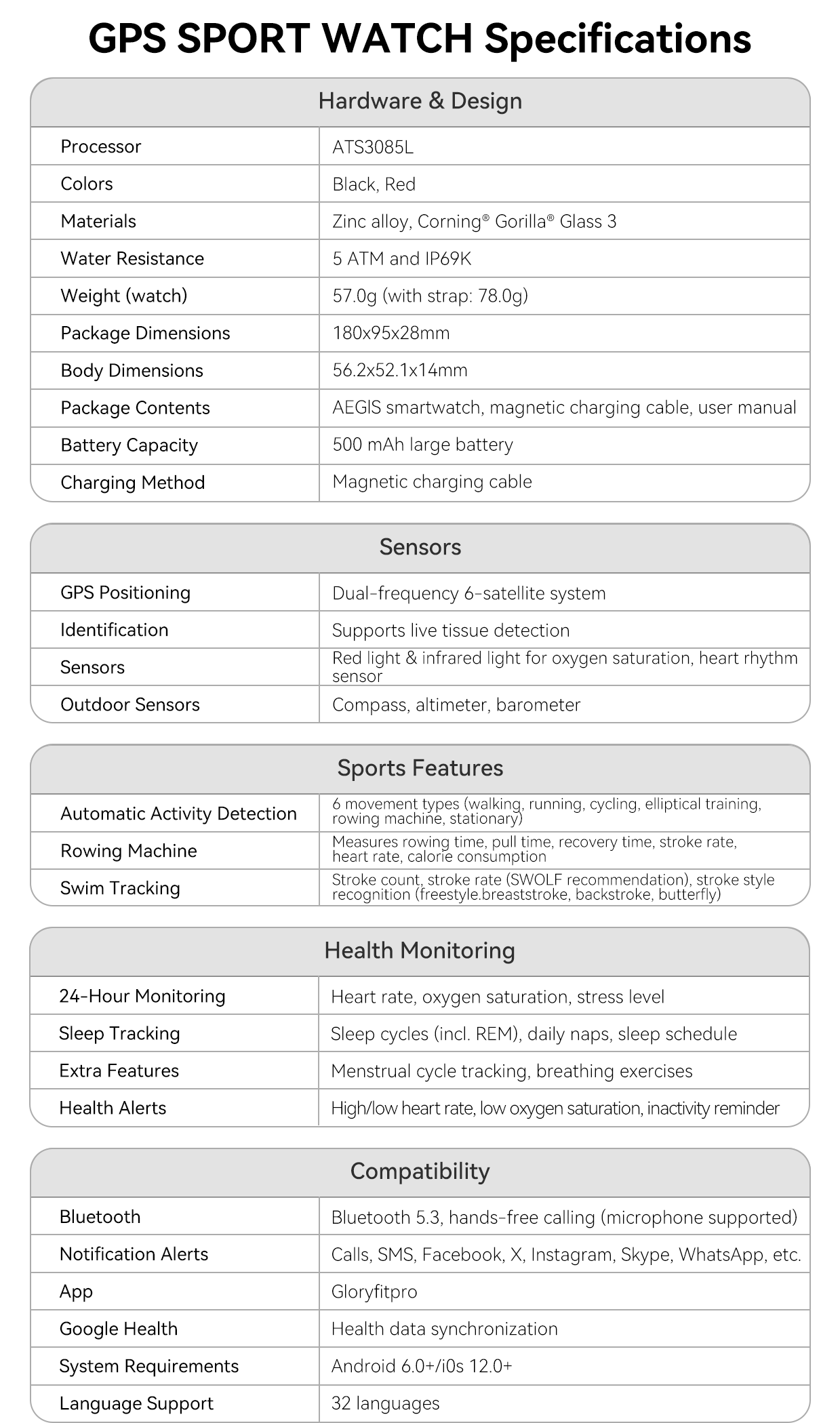- Comprehensive Sports & Health Monitoring- Multi-functional sensors precisely track 170+ sports and health data.