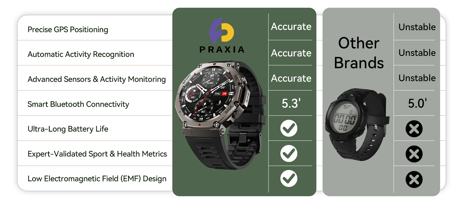 Praxia GPS Sports Smartwatch: Track your health 24/7, master your sports performance, optimize your daily life, and wear the perfect blend of fashion and technology.